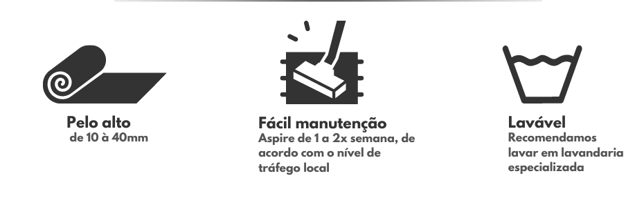 Tapete Shaggy com tons de marfim. Suave ao toque com sensação de aconchego, possui pelagem alta.